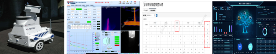 例如,宝武集团八钢炼钢厂,采用镭目机器人取代人,实现现场无人值守,迄今为止未发生任何人员安全事故,其中欧冶炉巡检机器人因为事故被高温铁水烧毁,有效避免了人员伤亡事件的发生。又如,采用镭目转炉智能化炼钢系统实现转炉封窗冶炼,满足了“钢八条“要求,减少转炉喷溅率20%,杜绝了冶炼冒烟事故发生,烟罩降罩提升煤气回收率1%,铁水温降减少63.5℃,有效提升了炼钢环节的安全环保性。