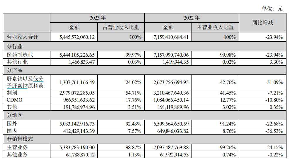 3月28日,深圳市海普瑞药业集团股份有限公司(海普瑞,002399.SZ;9989.HK)公布2023年报,全年营业收入54.46亿元,同比下降23.94%,归母净亏损7.83亿元,归母扣非净亏损7.8亿元。wind数据显示,这是海普瑞2006年以来首次出现净利润亏损。