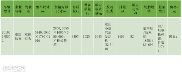 重庆长安的SC1031FRS52为长安跨越王微卡,长安跨越王微卡定位为直粱重载微卡,采用非承载式车身,针对微卡用户需求升级,专为重载而生。