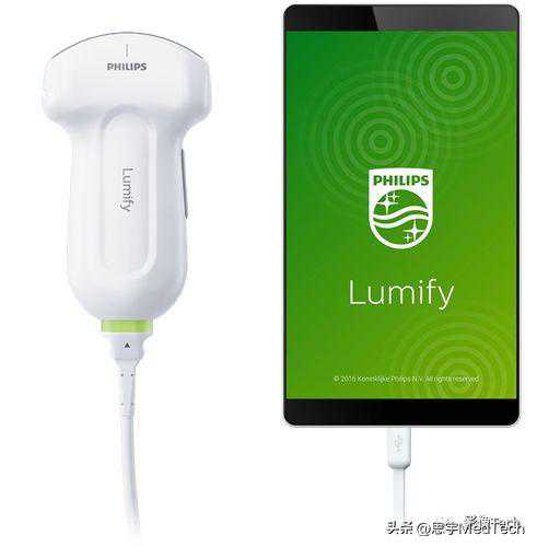 飞利浦于2015年推出了Lumify,Lumify外形如智能手机(本身集成了超声传感器和特殊的数据转换电路)大小,只需要下载LumifyApp,连接探头,然后注册,即可完成配置。此后医护人员就可以在需要的地点和时刻进行快速超声扫查诊断。在医护站接待患者,加快诊断速度,并在需要时提供护理。Lumify应用范围覆盖急症护理、内科、肌肉骨骼和诊所行医。