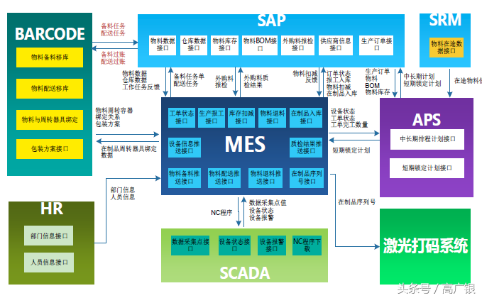 MES系统与ERP、PDM等系统在基础数据、生产计划、物料、质量、设备等方面存在接口与集成关系