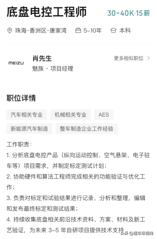 [懂车帝原创行业]在被吉利手机公司收购之后,魅族的未来本已清晰,但近期的一些招聘信息显示,魅族或许会进军造车领域。