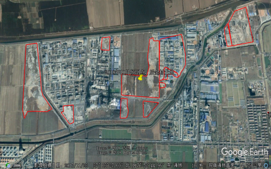 博汇集团非法填埋固体废物位置示意图(红线内为填埋区域)