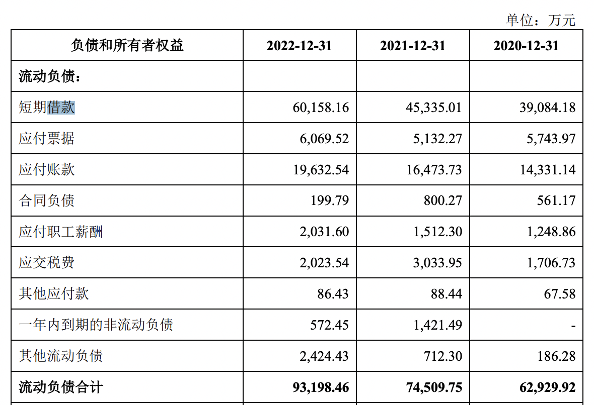 乐居财经《预审IPO》注意到,截至各报告期末,泰鸿万立的短期借款分别为3.91亿元、4.53亿元、6.02亿元,占同期流动负债的比例分别为62.11%、60.84%、64.55%,占比较高。而同期货币资金只有5148.32万元、4420.8万元、10369.09万元,难以覆盖短债。