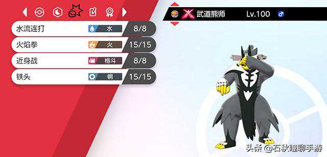 解析:武道熊师拥有550的超高种族值,并且攻击一项的种族值很高,速度也不差。光凭这面板就有了进入对战的入场券。
