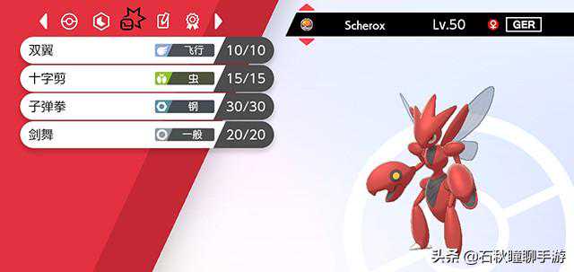 解析:这是当年的热门对战宝可梦,如今终于获得签证上岛,我对它的期待度非常高。它最大的优点就是虫钢属性组合实在太好,只被火系克制,11个属性都对它效果很差,这就意味着对手如果没有火系招式,那就很难对它造成多少的伤害,这也就给了它剑舞的机会。