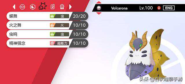 招式:蝶舞、火之舞/大字爆炎、虫鸣、精神强念/终极吸取