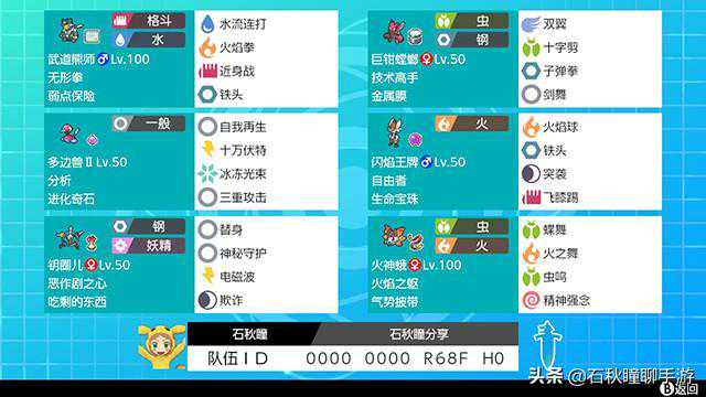 最后分享一下上面提到的这些宝可梦所组成的队伍。作为试用阵容,大家可以尝试使用这些新宠,如果喜欢的话就可以练起了。不建议用于PVP战斗,毕竟只是给大家做一个新宠推荐,虽然实战强度还是有的,但并没有考虑互补的问题,对当前的主流套路也没有什么针对性。