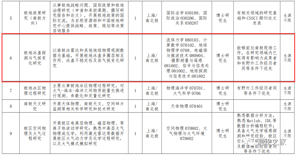 极地中心本次拟公开招聘12个岗位工作人员共16名,具体岗位信息详见附件。