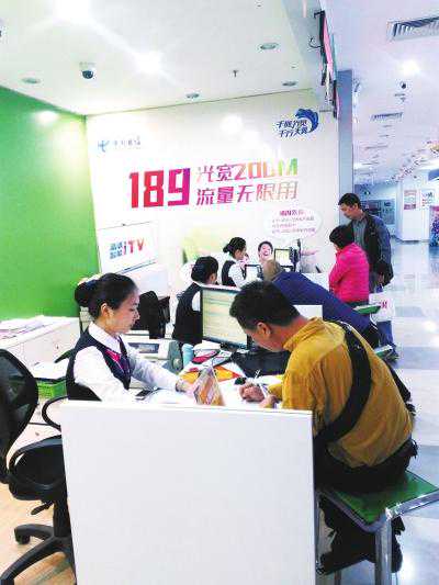 用户在中国电信营业厅了解最新推出的各项服务举措。