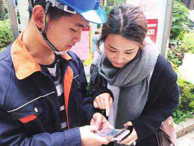 中国电信社区经理向用户介绍如何申请宽带“先装后付”。