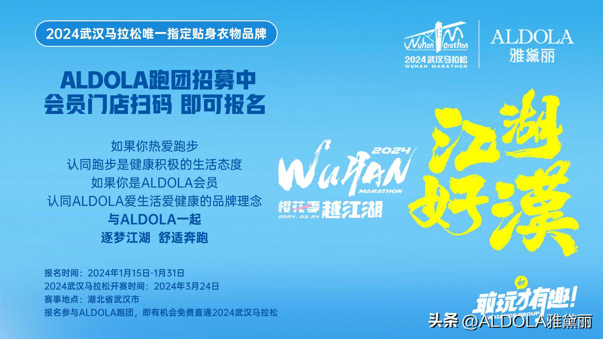 热火朝天的马拉松,不仅是一场运动员和爱好者的比赛,也是一场激烈的品牌战。赞助赛事从来都是品牌重要的营销活动,品牌们重视在赛事中强势曝光,展现实力。今年汉马的赞助商中有很多老朋友,比如中国银行、特步、怡宝等都多次携手汉马,也有一些新的品牌加入。ALDOLA雅黛丽就是其中之一。ALDOLA雅黛丽首次作为汉马赛事合作单位,将倾情助力2024武汉马拉松,共享运动的激情与精彩。