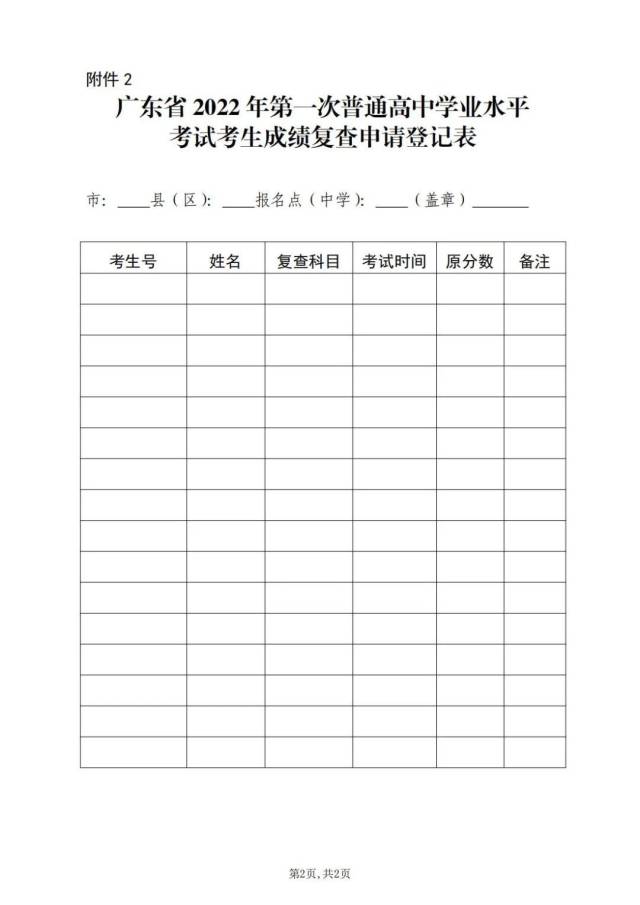 2.广东省2022年第一次普通高中学业水平考试考生成绩复查申请登记表
