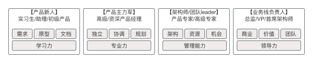 因此,不同级别的产品经理,在整个产品能力矩阵上要有更高的负责范围和能力要求。