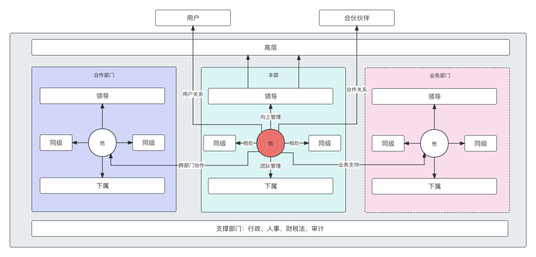 进入企业以后,我们将彻底放飞自我,与领导、与下属、与同级同事、与产研测试、与业务部门、与高层、与行政人事、办理报销等等,庞大的社交人事体系,让你奔波于其中。