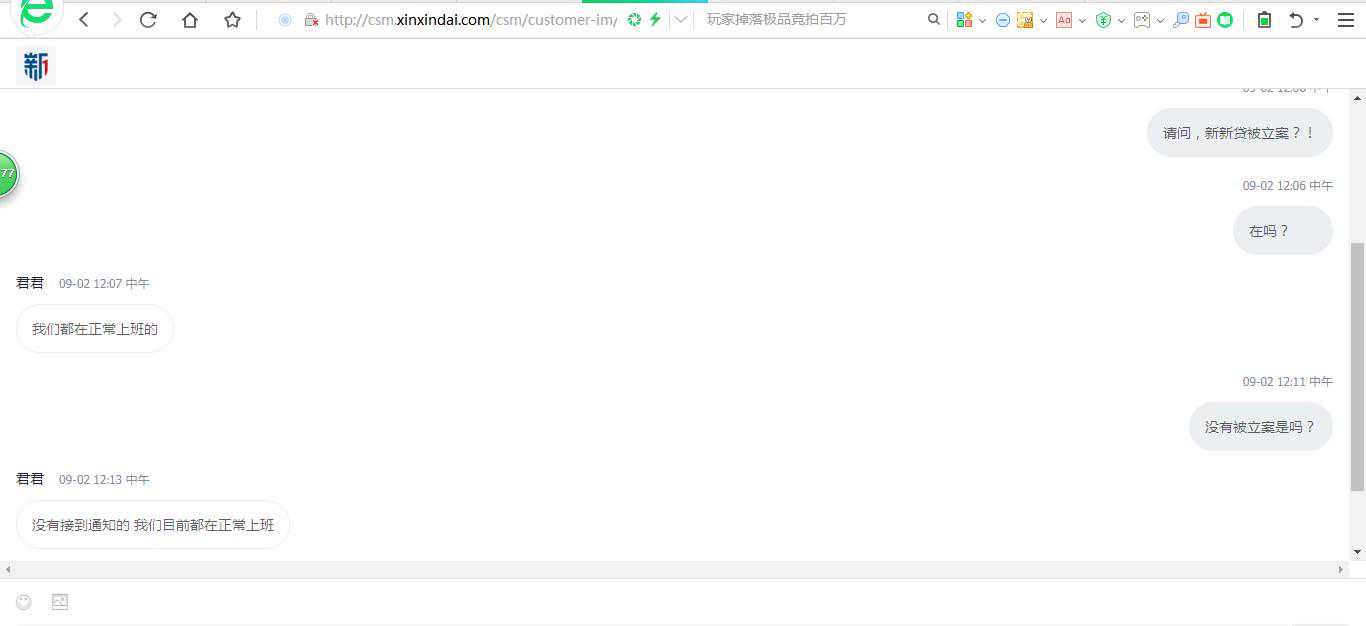 新京报记者在9月2日中午拨打了新新贷官方客服电话,对方告知“目前没有接到这个通知,我们还在正常上班。”新新贷在线客服也确认了这个说法(如图1所示)。