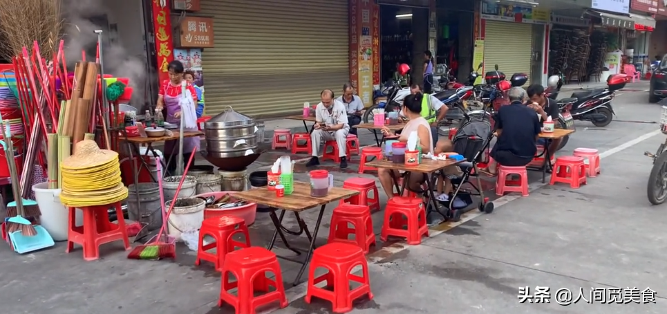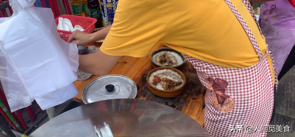 那么今天,我要带大家一起去看看的则是广州这边一家很有名气的早餐店,他们家在整个广州都算是相当有名气的一家美食店了,就在增城区的一个小镇里,每天都能够看到相当大量的顾客前来光顾。他们家主打的菜品是这个钵仔饭,也叫做蒸饭。对于大部分的广州人而言,钵仔饭绝对是大家最熟悉的一种美食小吃,而这家店在这附近也绝对算是生意最好,做法最传统的一家钵仔饭小店。