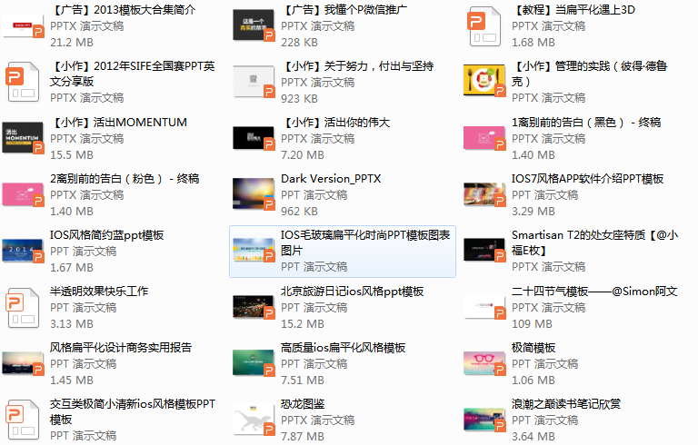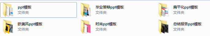 每个文件夹里都有各种样式的PPT模板。