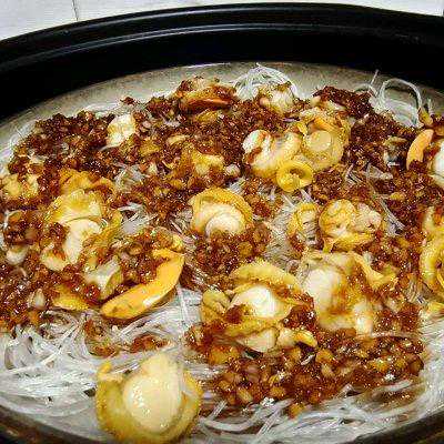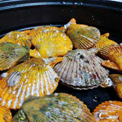 2、扇贝刷洗干净上锅大火蒸3分钟,扇贝开口就可以了
