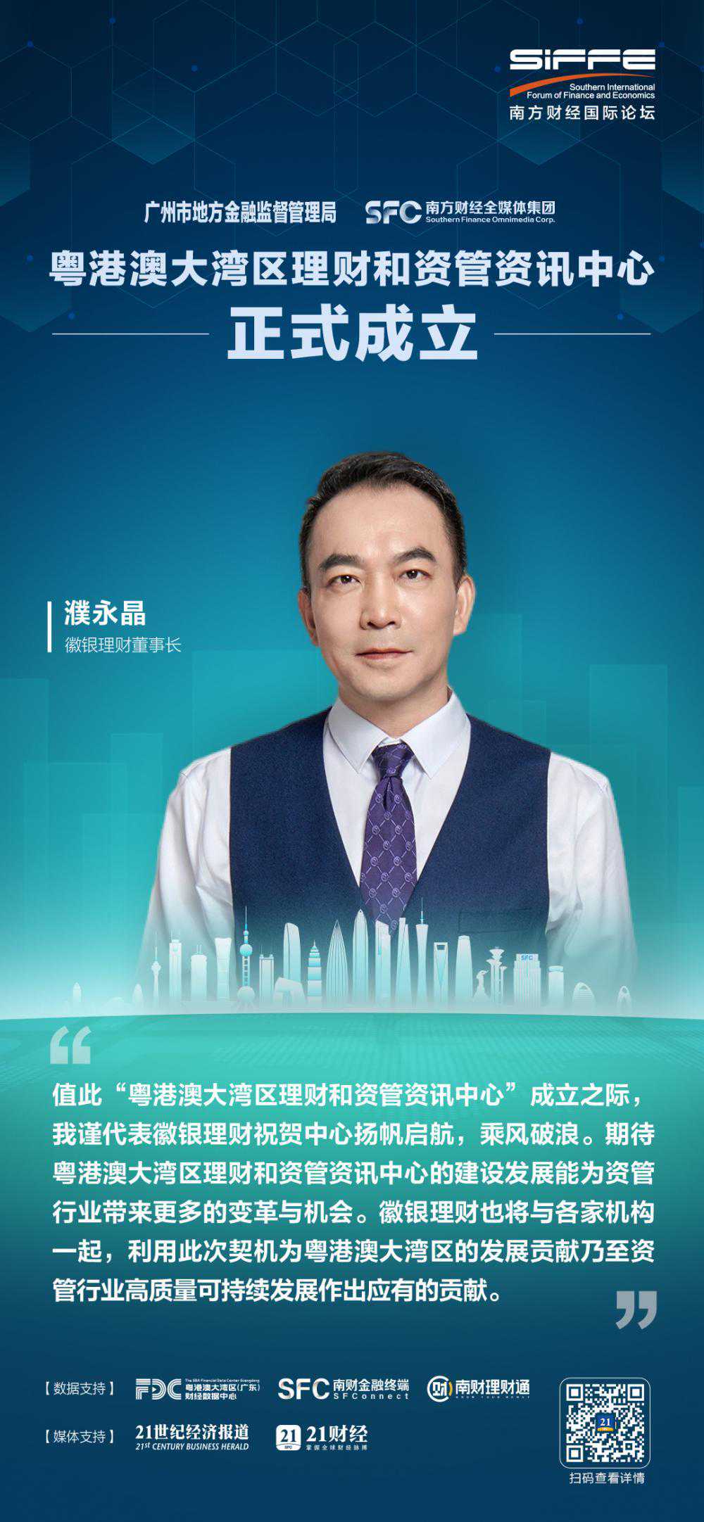广东省政府副秘书长郭亦乐、广州市副市长赖志鸿、广东省市场监督管理局党组成员、副局长郭宇华、南方财经全媒体集团党委书记、董事长任天阳、广州市地方金融监督管理局副局长徐秀彬、南方财经全媒体集团副总编辑、21世纪报系党委书记、总编辑邓红辉等共同为“粤港澳大湾区理财和资管资讯中心”揭牌。