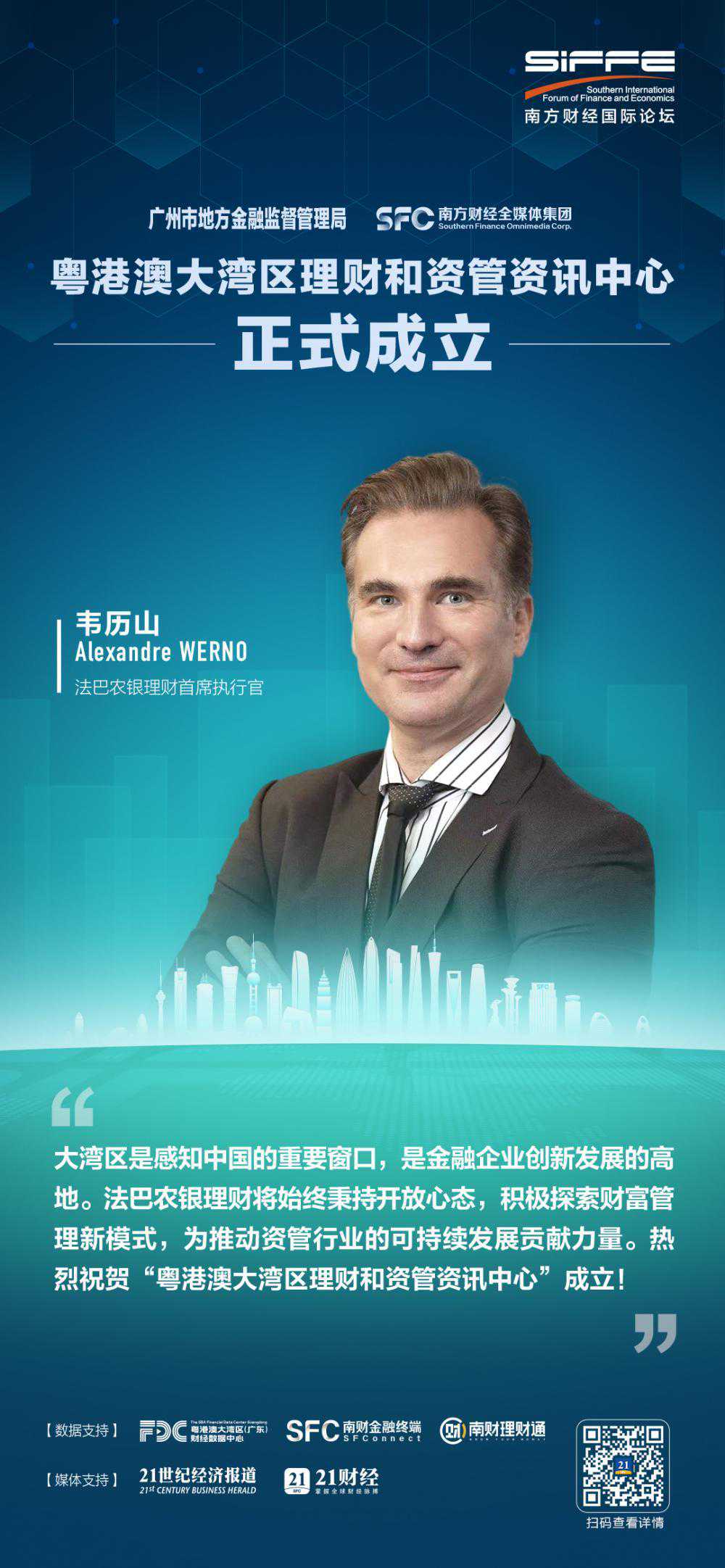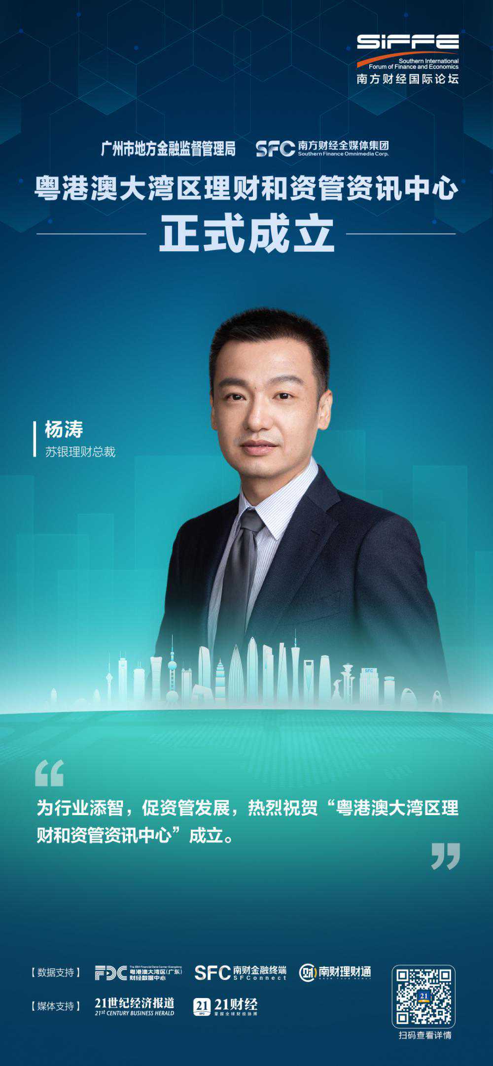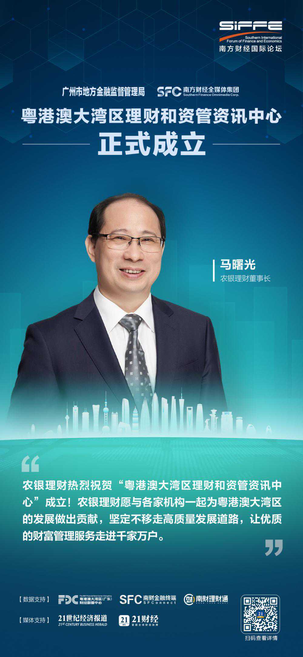 2023年12月6日,由南方财经全媒体集团主办、21世纪经济报道承办的以“复苏与新循环——产业新生代·资本新逻辑”为主题的南方财经国际论坛2023年会在广州市举办。会上,广州市地方金融监督管理局与南方财经全媒体集团签署战略合作协议,正式成立“粤港澳大湾区理财和资管资讯中心”。