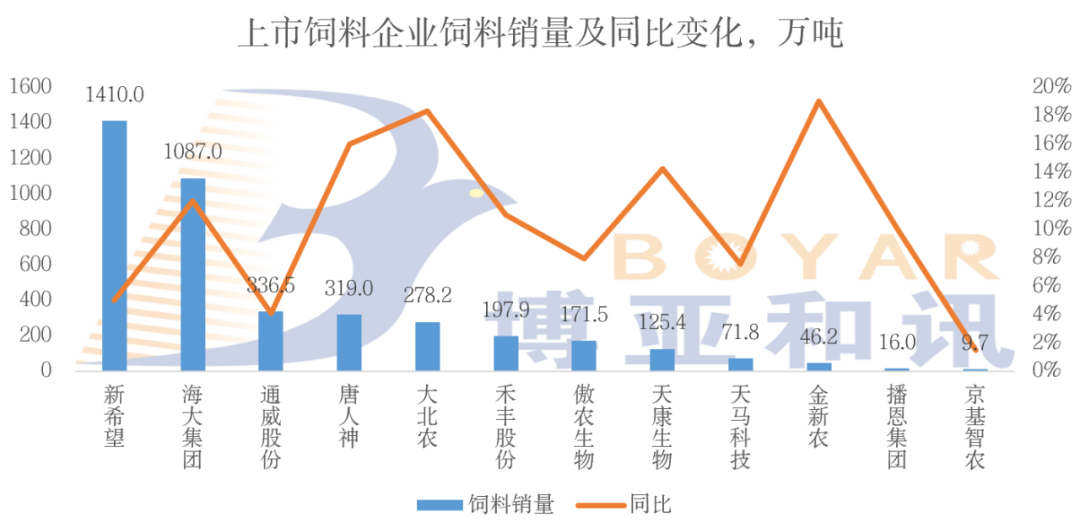 12家企业饲料销量4069.2万吨,同比增长9.3%