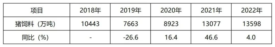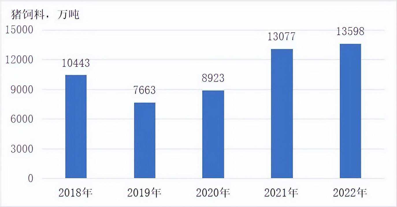 图12018—2022年全国工业饲料总产量变化情况全国猪饲料产量