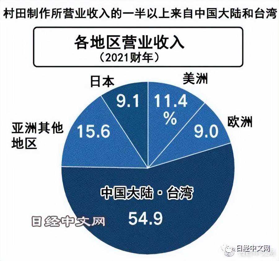 无锡村田电子拥有超过1万名员工,是向中国国内的通信和汽车行业供应MLCC的主力工厂。在最近10年里,村田制作所的营业收入增至近3倍。中国大陆和台湾的营业收入比率一直占到5成。